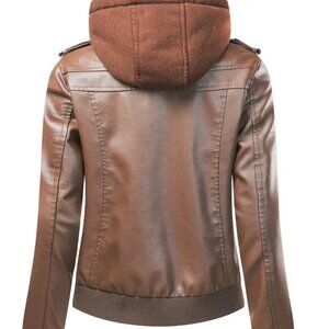 Hooded Coffee Motorcycle Biker Style Jacket