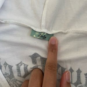 Brand is Sisly. Shirt is in excellent used condition and fits like a women’s size small! ☺️