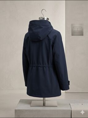 Designed with a sophisticated navy softshell exterior, this jacket perfectly blends a classic aesthetic with modern weather protection. The signature red, white, and blue detailing along the zippers provides that iconic Hilfiger look that never goes out of style.