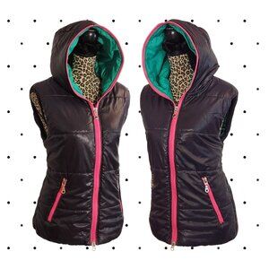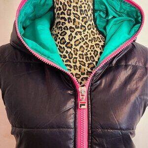 Hooded puffer vest with zipper and xl sized hood