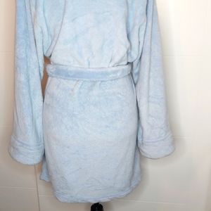 Super warm n cozy baby blue robe with hood. Also has two pockets and a tie around waist. Like new condition.