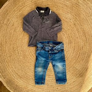 Hoodie PETIT BATEAU + jean WEEK-END À LA MER - 12 mois