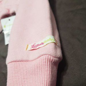 Please Mum, a Canadian brand of children’s clothing. The sweater is pink and has a heart/stripe design on the front. The sweater has a zip up closure and long sleeves. The sweater is brand new with tags and is 6-12 month size. The sweater is cozy and cute and will keep your baby warm and stylish. This is a great item for any baby who loves bright and cheery pieces. Almond Blossom Hoodie with stripe.