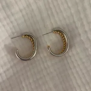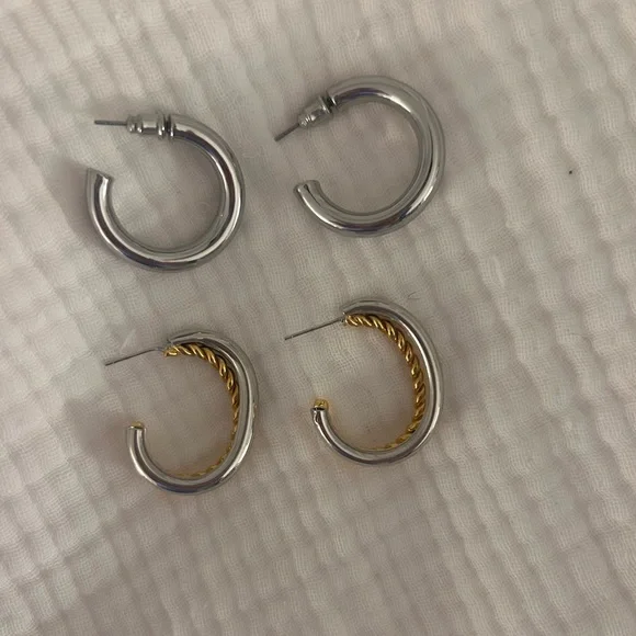 Includes a silver pair and two toned interwoven pair. I believe both were from a local jewelry market.
