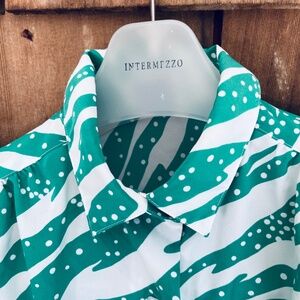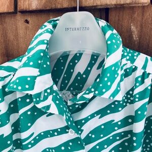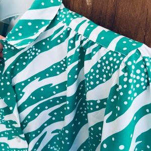 Hooper Associates Vintage 80s 90s Polka Dot Green Stripes Long Sleeve Blouse 16