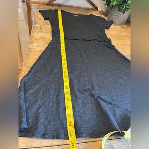 Robe noire à manches courtes de la marque Horny Toad, avec encolure croisée et taille cintrée flatteuse. Tissu doux et léger, idéal pour le quotidien ou les sorties décontractées. Étiquette taille XS (très petit).