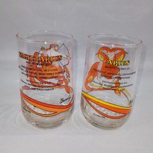 Horoscope Aries Sagittarius 1976 Vintage 4.75" Glass Set 2 Drinking Glasses