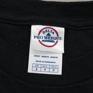 This shirt is tagged a men's small (S). The measurements are as follows in inches: