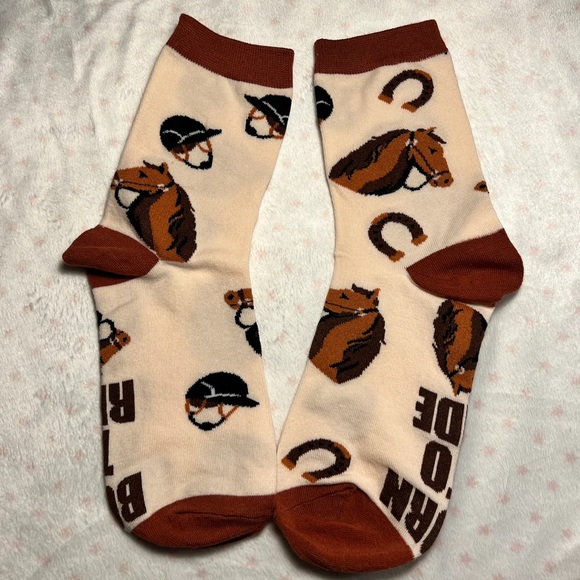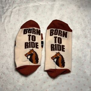 Cute horse patterned socks that say Born to Ride. Perfect gift for any horse lover.