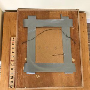 Vintage hand made framed copper wall hanging has horse & foal design as shown, signed "E. McNeil" in the bottom right corner. Frame size is 16" x 19 1/2" x 3/4", design size is approx. 8 1/4" x 10 3/4". Pre-owned condition: some surface wear from display/storage. Frame has heavy wear scrapes/scratches, backing is duct taped to frame.