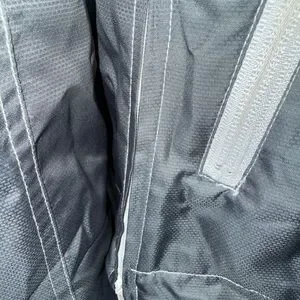 It has a hood in the neck. There isn’t any holes or stains or wear.