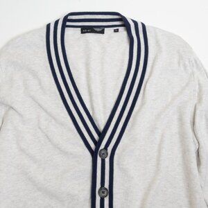 Horst Italian Cotton Cardigan Sweater Gray Navy Trim Mens Medium NEW