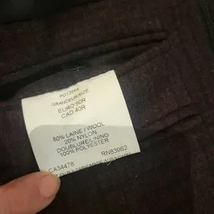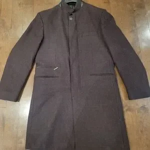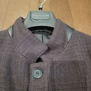 Premium brand. Dark burgundy and black. Very nice condition. 80% wool, 20% nylon. 3 inner pockets Has a zipper closure and concealed buttons. Size says EURO 50R, CAD 40R