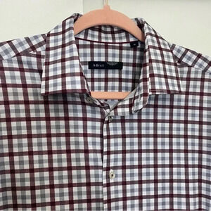Horst men maroon white plaid button up long sleeves shirt workwear casual preppy