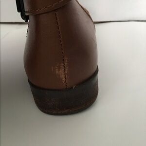 Rich, “toffee-brown” shade of leather zip-up boots. Size 8M. Mid-calf length and low-heeled. Some minor wear (see photos), but in overall great condition. See pics for measurements.