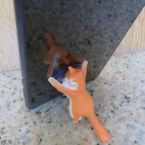Cute orange cat cell phone stand. Suction cup attaches firmly, and does not leave a mark.