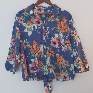 Host Pick Chico's No-Iron Cotton Bloom-Print Shirt Blue with Floral Print Size 3