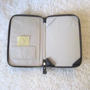 Coach tablet, E-reader book, passport case. Color: Brown/Taupe. SIZE: See Description. Features: