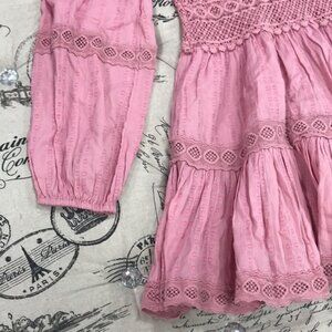 Lacy crochet panels intensify the vintage charm of a long-sleeve minidress complete with a dramatic plunge neckline.