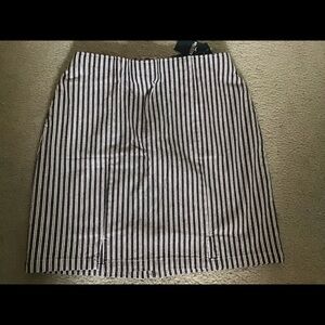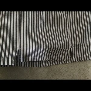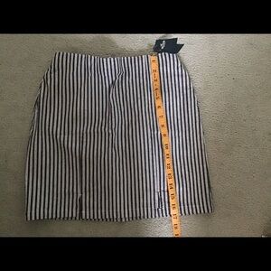Super cute “ultra high-rise” mini skirt with white & charcoal grey stripes. Stylish front slits and a zippered closure at the back. Brand new with tags still on. See pics for measurements.