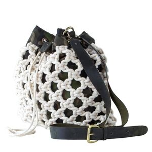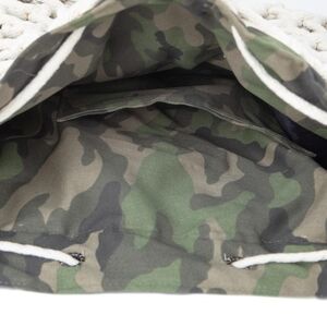 Material: Knitted Cotton Macrame Yarn with Camouflage Canvas Lining and Genuine Leather Handle
