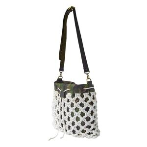 Material: Knitted Cotton Macrame Yarn with Camouflage Canvas Lining and Genuine Leather Handle