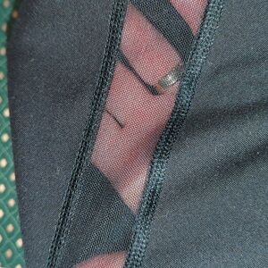 Funky cut away slashes on the legs. Decorative curved seaming on the back, shaped gusset with very minimal pilling. Very good condition.