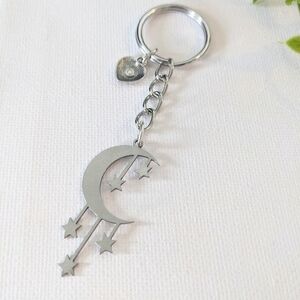 Selling a silver keychain with a Stainless Steel Moon Star charm. Brand New and not used.