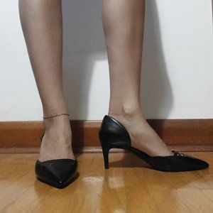 Brand new Nine West black leather kitten heels with a pointy toe and sexy cutout detail! Never worn, excellent new condition. Size 8.5, fit true to size. Would look amazing with some trousers at the office or with your favorite LBD for a night out! Super versatile and neutral pair of heels that can effortlessly put the finishing touch on any outfit. Easy to walk in too since the heel is not too high. Offers welcome!