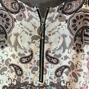 Description: Pink/Purple Paisley Print Sleeveless Top w/ Zipper Detail