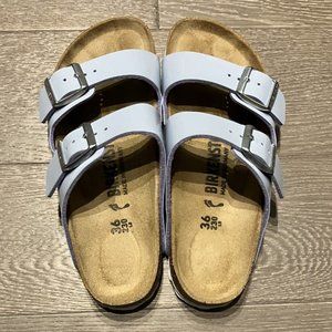 Super Pretty and Rare Arizona Patent Dove Blue Birkenstocks