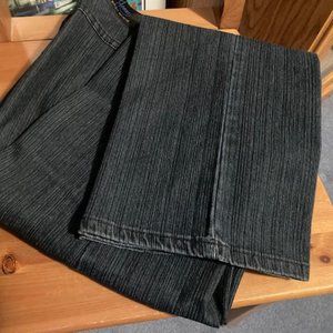 Hardly worn, excellent condition. No frays on the bottom cuffs. Gentle pin stripe design to the fabric.