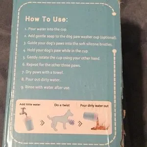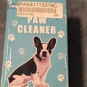 Large breed cleaning paw kit has never been used. The box however was used as a display and it has seen better days. This tool to clean paws is recommended for large breeds like Australian Shepherd, Border Collie, Bull dogs or Beagles.