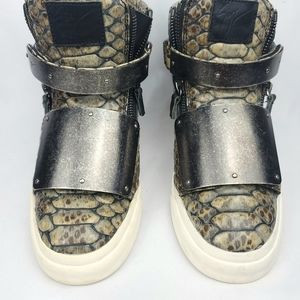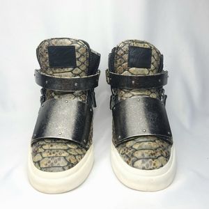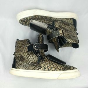 Giuseppe Zanotti Leather python embossed high top sneakers with metal logo plaque, size EU 41