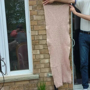 I think this might be angora. Possibly hand woven. Very Good Vintage Condition. Pale pink, woven shawl. From my Grandmother's home.