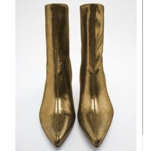 Zara Gold Metallic Thin Heel Ankle Boots - NWT