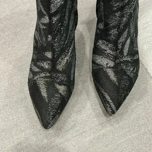 Sleek and sassy, this pair of bootie by SAM will sure to give you a makeover from mundane fashion. Comprising of a Jaguar Patterned Fabric upper with pointed toe front, this boot boast of an inside zip closure, comfortable cushioned insole, and a smooth sole with covered 2”kitten heel.