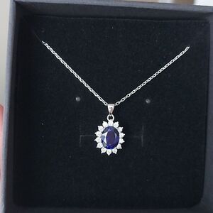 🌟Material: 925 sterling silver Blue Sapphire Pendant. Stamp shown on pendant and chain.