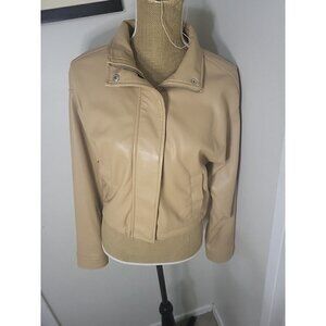 ♤Hostpick♤ Abercrombie Cropped Bomber Jacket Camel Color Size M Vegan Leather