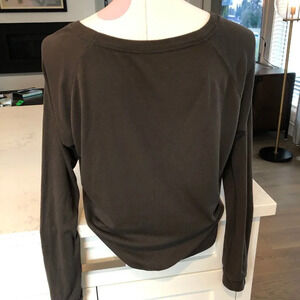 Obey Propaganda Casual Skull Graphic Long Sleeve Scoop Neck Poly/Rayon Blend T Shirt Top in Brown & Cream