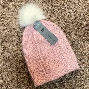 Light mauve/pink NWT toque by Hot Paws. Size 7-14 years. White faux fur pom pom. Soft and warm!