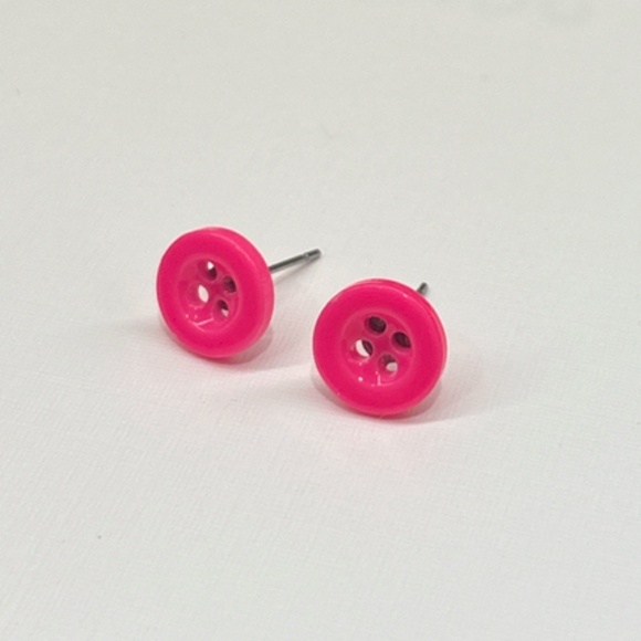 Never worn before, from 2015, plastic hot pink button earring attached to earring base