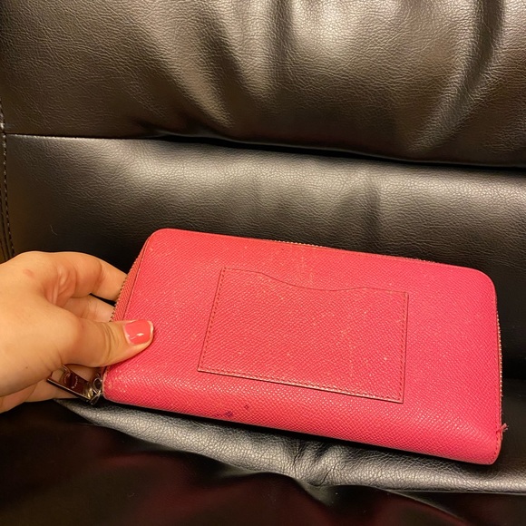 Authentic hot pink coach wallet. Real leather. Has a spot on it. Zippers work great! Good condition!