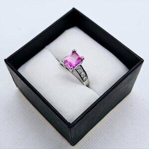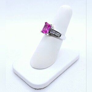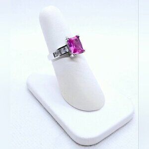 Hot Pink Cubic Zirconia Silver Tone Fashion Ring