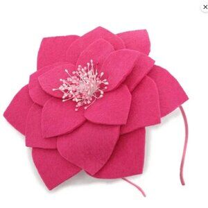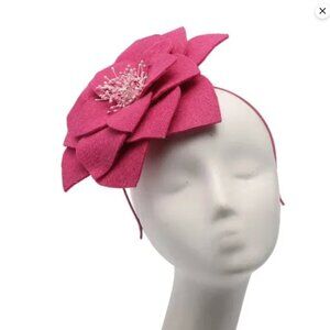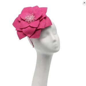 Elevate your special occasion look with this stunning, brand new, never-worn handmade hot pink felt flower fascinator. Crafted by a talented Canadian designer, this unique headpiece is perfect for adding a vibrant touch to your ensemble. This beautiful bespoke fascinator features intricately layered felt petals in a captivating hot bright pink tone, centered with delicate beaded stamens for a touch of sparkle. It's securely mounted on a comfortable, slim matching headband, making it easy to wear and position