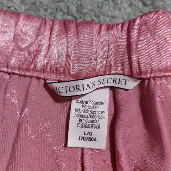 Hot Pink Shiny Satin Victorias secret pyjama set Top XL bottoms L