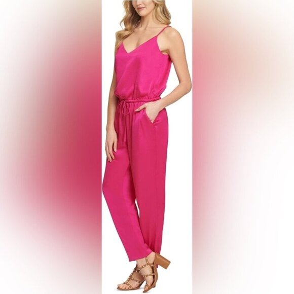 Hot Pink Spaghetti Strap Sleeveless Jumpsuit with Pockets – Size M