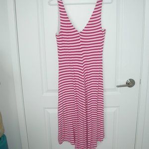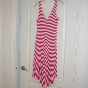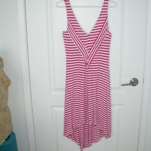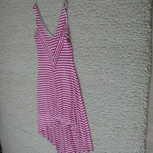 Hot pink and white striped dress with hi/low hem - lined - v neck - 18" pit to pit - 37.5" shoulder to hem at front - 40" shoulder to hem at rear - new, never worn