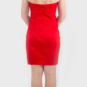 Hot Red Floral Embellish Ruffle Dress Party Satin Sz 6. Zipper back. Lined