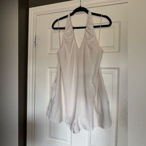 An easy one-and-done romper with a flattering halter neck, perfect for days on the go. Featuring a soft, smooth fabrication that's effortless and breathable in a flowy romper silhouette.